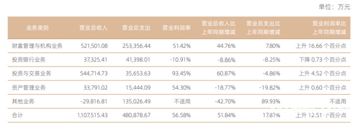 具体来看,国信证券在财富管理与机构业务实现营业收入52.15亿元,同比上升44.76%。该业务营收占国信证券半年报总营收的47.09%。